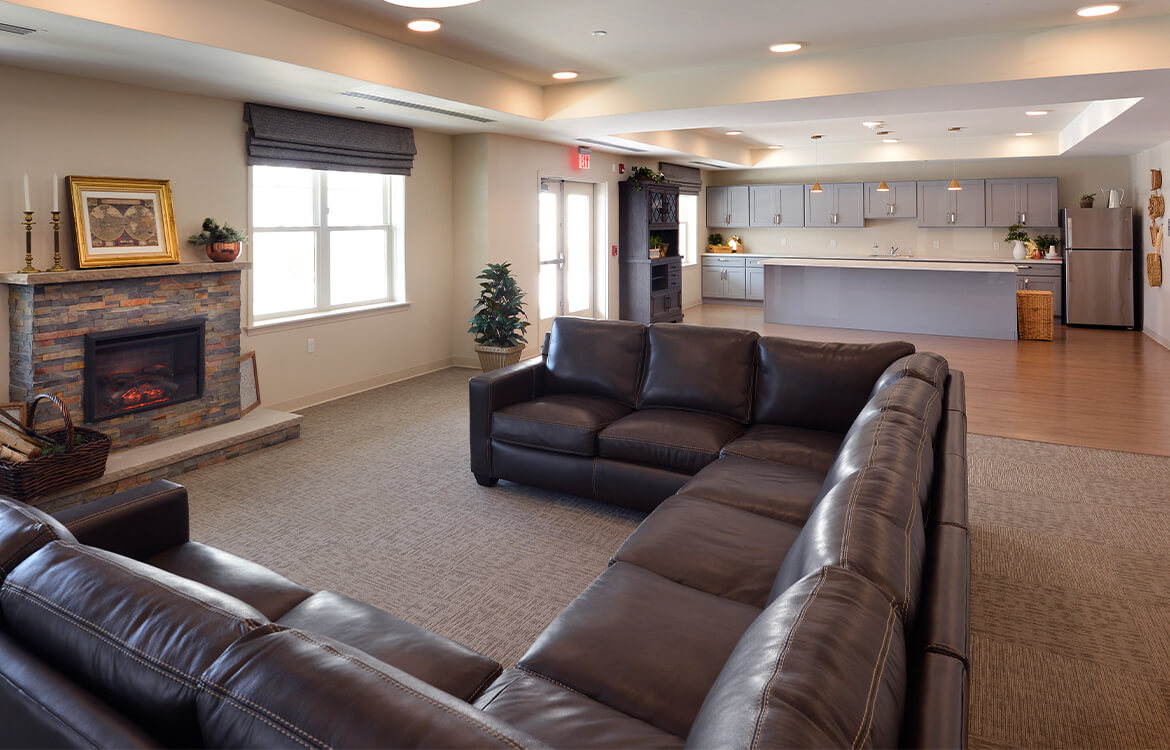 The building was designed with communal resident spaces in mind, with the program prioritizing spaces for residents to interact with each other. These include a 1,600 SF “living room”, focused around a central fireplace that opens to a covered porch; an adjacent open kitchen with a large island for gathering or organized programming, such as cooking demonstration classes; and a 2,000 SF patio with a gazebo.